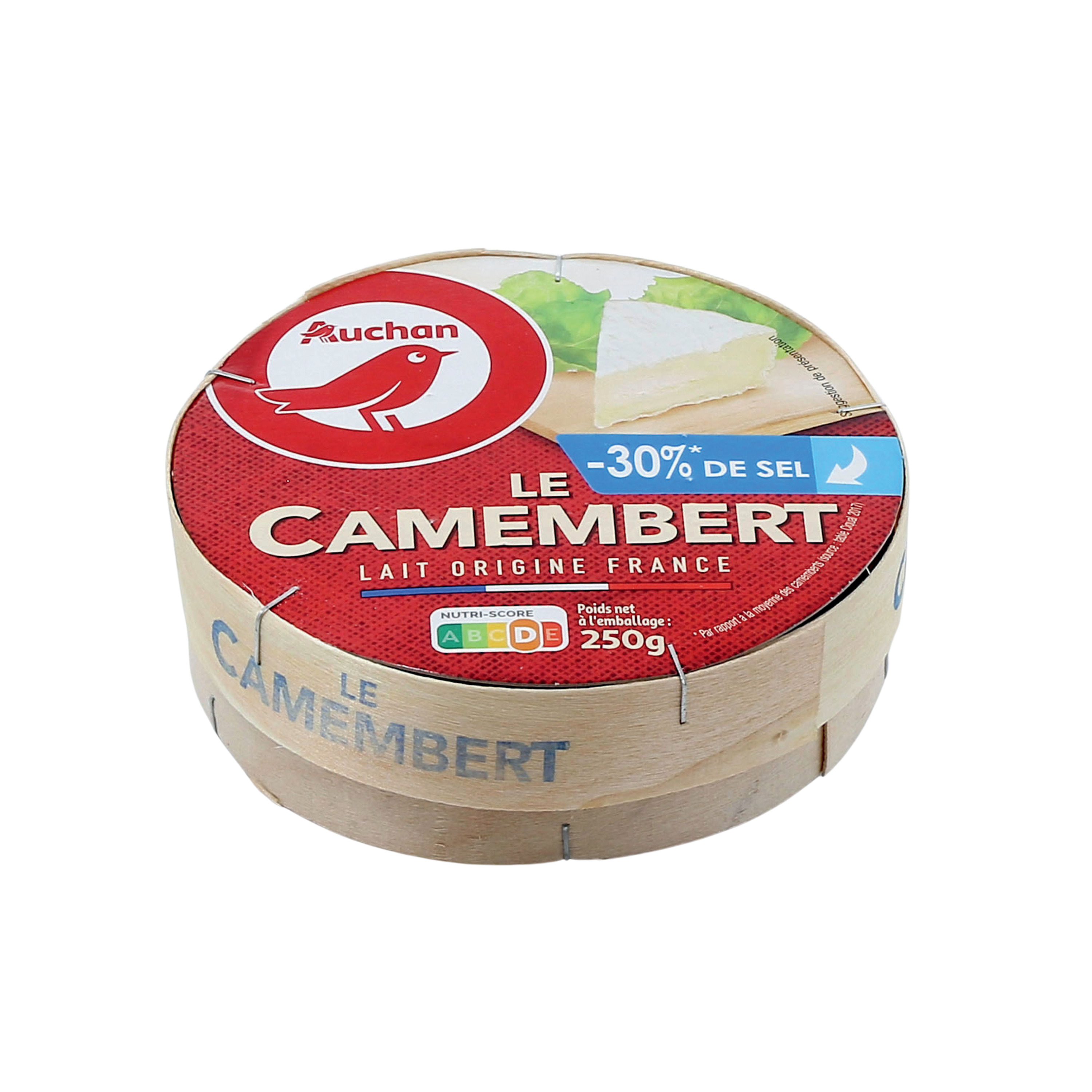 Camembert au lait pasteuriséréduit en sel de 30% par rapport à la moyenne des camemberts (source : table Ciqual 2013)