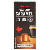 Intense et gourmand, découvrez le café caramel en capsules aluminium Auchan d'intensité 7/10. 10 capsules pour 52g de pur plaisir.