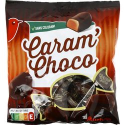 Bonbons de chocolat noir fourrés au caramel.Sans colorant.