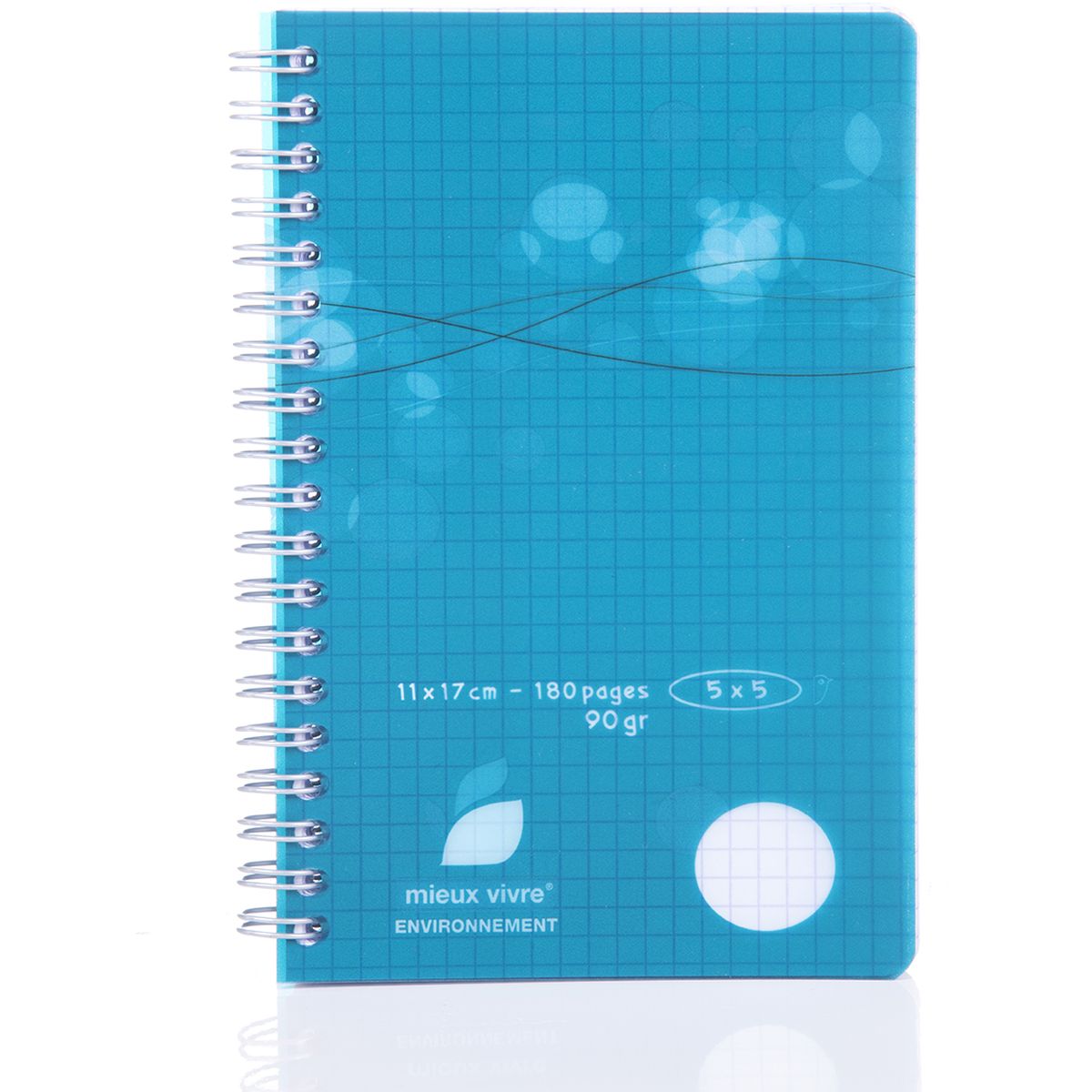 Carnet polypro 11x17cm 180 pages petits carreaux 5x5 à spirale coloris aléatoire