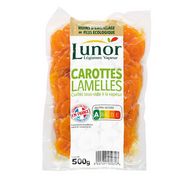 Carottes en lamelles cuites sous-vide à la vapeur. Origine France.