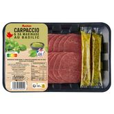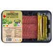 carpaccio de viande bovine et 2 dosettes de marinade avec de l'huile d'olive (4.0%) et du basilic