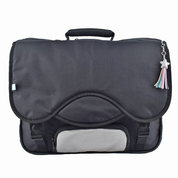 Cartable 41 cm CM1/CM2 noir pochette grise argentée