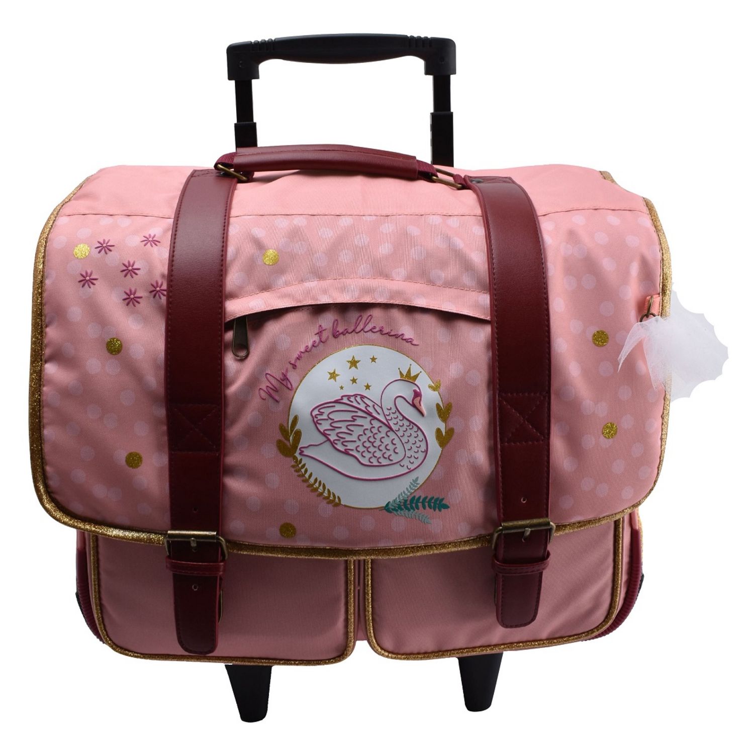 Pratique/rangement: Doté d'une grande capacité de rangement, les 2 compartiments intérieurs offrent un bel espace pour pouvoir transporter confortablement des cahiers A4 et 24x32 cm, un classeur, une pochette élastiquée et des livres. Deux poches ouvertes devant permettent d’organiser le stockage du petit matériel scolaire : on y glisse la trousse, le cahier de texte ou l'agenda, l’emploi du temps, une palette de peinture et le matériel de géométrie. Sur le côté, une poche ouverte en maille filet permet de ranger une gourde pour la récré et une poche zippée sur le rabat accueille un trousseau de clés, une carte de cantine et les petites affaires personnelles que l'on ne veut surtout pas perdre. Pratique, un emplacement à l’intérieur du rabat permet de ranger sa règle pour une protection optimale. Confort: Confortable à porter, ce cartable avec doublure contrastée Auchan comprend un dos et de larges bretelles rembourrées, qui s'adaptent à toutes les tailles et à toutes les morphologies grâce à leurs sangles ajustables. La poignée robuste sur le dessus offre un porté confortable. Ce grand cartable dispose de 2 sangles fantaisie et se ferme à l'aide d'un rabat muni de 2 fermoirs en métal, pour pouvoir ouvrir et fermer son cartable sans risque de se pincer les doigts. Sécurité: Ce modèle dispose de plusieurs éléments réfléchissants placés sur les côtés et au-dessus du cartable (l’élément phosphorescent se range dans une poche zippée sur le dessus en cas de non-utilisation) pour permettre à l’enfant d’être visible en cas de faible luminosité. Confectionné dans une matière en polyester robuste, il résiste aux intempéries, à l’usure et aux accrocs. Le petit plus : des porte-étiquettes personnalisables devant et à l’intérieur du rabat pour y placer un coloriage ou éviter à votre enfant de perdre ou d’oublier son cartable. Responsable / écologique: En plus, le tissu extérieur du cartable a été conçu à partir de polyester recyclé. Des bouteilles usagées ont été collectées, triées et fondues pour réaliser un fil de polyester de haute qualité, résistant et durable. En polyester recyclé 300D. Poids : 1840 gr. Dimensions : 41x33x17 cm. Conseil d'entretien : nettoyer les surfaces extérieures et intérieures du sac avec une lingette ou une microfibre humide. Ses atouts : Un design tendance avec breloque Finitions dorées Trolley 2 roulettes 2 compartiments Fermoirs avec boucles Éléments réfléchissants En toile résistante Poignée de transport Larges bretelles ajustables matelassées En polyester recyclé Garantie 3 ans Exclusivité Auchan, conçu par nos designers