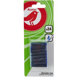 Ces 24 mini cartouches d'encre effaçable alimentent en encre votre stylo plume ou roller à cartouche. Elles proposent une écriture lisse, fluide et agréable. Couleur de l'encre : bleu.