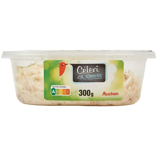 Ingrédients : CÉLERI 68%, eau, huile de colza, vinaigre d'alcool, MOUTARDE de Dijon 1,5% (eau,graines de MOUTARDE, vinaigre d'alcool, sel), MOUTARDE à l'ancienne 1% (eau,graines de MOUTARDE, vinaigre d'alcool, sel), jaune d'OEUF, sel, épaississant : gomme de xanthane, acidifiant : acide citrique. Traces éventuelles de :crustacés, poissons, lait, soja, céréales contenant du gluten, mollusques.