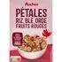 Ingrédients : Riz (54%), BLÉ complet (30%), sucre, ORGE (8.3%), fruits rouges lyophilisés (5%) (fraises, framboises, cerises), farine complète de BLÉ, sel, farine d'ORGE maltée, émulsifiant : mono- et diglycérides d'acides gras. Traces éventuelles de soja, de lait, de fruits à coque et d'autres céréales contenant du gluten.
