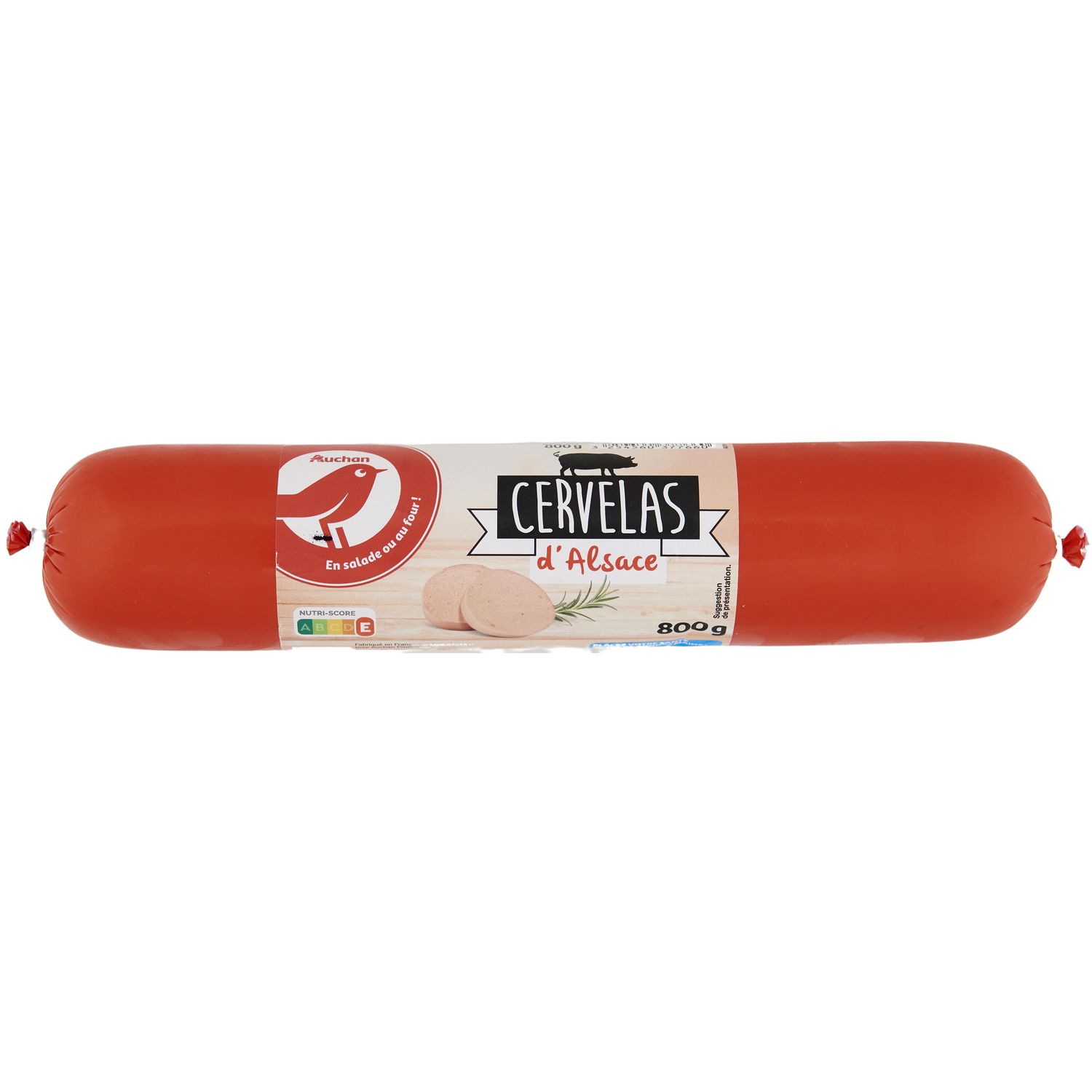 Le cervelas se compose de viande de porc et de bœuf, hachée finement puis fumé au bois de hêtre. Ils sont délicieux piqués de cure-dent, servis à l'apéritif. Il permet également de décliner le traditionnel sandwich parisien en sandwich alsacien, agrémenté d'une pointe de moutarde et lamelles de cornichon