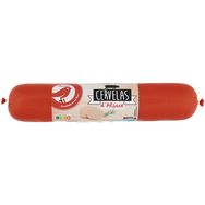 Ingrédients : Viande de porc 48%, eau, viande bovine 8%, gras de porc, couenne de porc, tissu conjonctif bovin, sel, protéine de pois, arômes naturels, dextrose stabilisants : triphosphates, diphosphates épices et plantes aromatiques, plasma de porc sec bouillon de porc déshydraté antioxydants : ascorbate de sodium, acide ascorbique acidifiant : glucono-delta-lactone, conservateur : nitrite de sodium.Traces éventuelles de gluten, lait, moutarde, œuf, fruits à coque, soja et sulfites.Elaboré à partir de viande de porc et de bœuf Origine France.Enveloppe externe non consommable.