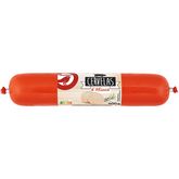 Ingrédients : Viande de porc 48%, eau, viande bovine 8%, gras de porc, couenne de porc, tissu conjonctif bovin, sel, protéine de pois, arômes naturels, dextrose stabilisants : triphosphates, diphosphates épices et plantes aromatiques, plasma de porc sec bouillon de porc déshydraté antioxydants : ascorbate de sodium, acide ascorbique acidifiant : glucono-delta-lactone, conservateur : nitrite de sodium.Traces éventuelles de gluten, lait, moutarde, œuf, fruits à coque, soja et sulfites.Elaboré à partir de viande de porc et de bœuf Origine France.Enveloppe externe non consommable.