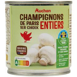 Champignons entiers 1er choix - 115 et 230g - Auchan/Rochambeau