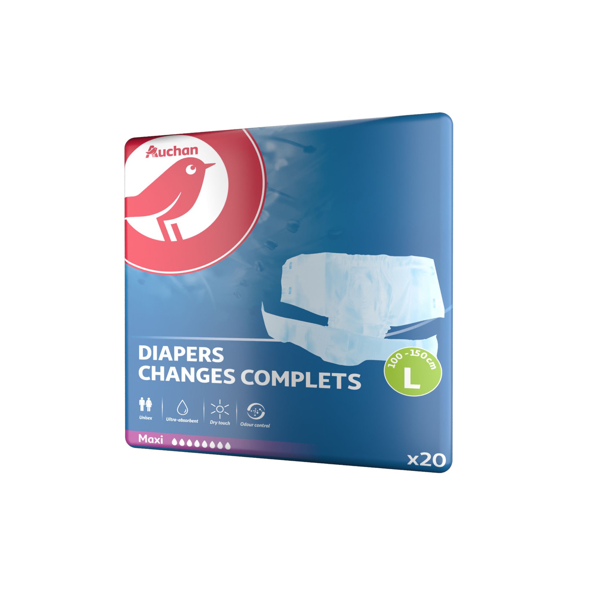 Les changes complets Auchan vous apportent une protection ultra absorbante contre les fuites urinaires et fécales importantes et contrôle les odeurs. Une double barrière anti-fuites garantit confort et sécurité. Son voile de surface très doux garde au sec et assure un confort optimal. Le témoin d'humidité extérieur, lorsqu'il se colore, prévient de la nécessité de changer la protection. Convient aux femmes et aux hommes à mobilité réduite ou alitées. Ce produit est un dispositif médical.