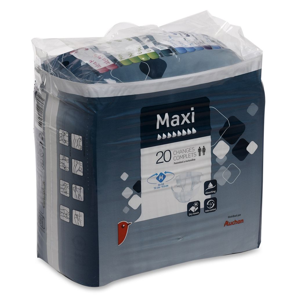 AUCHAN HYGIENE ADULTE FLUX ABONDANT CHANGES COMPLETS TAILLE M X20