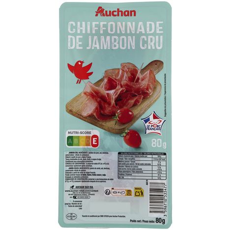 Ingrédients : Jambon de porc, sel,dextrose, conservateur : nitrate de potassium. Elaboré à partir de porc origine France. Traces éventuelles de lait, œufs, fruits à coque et soja.