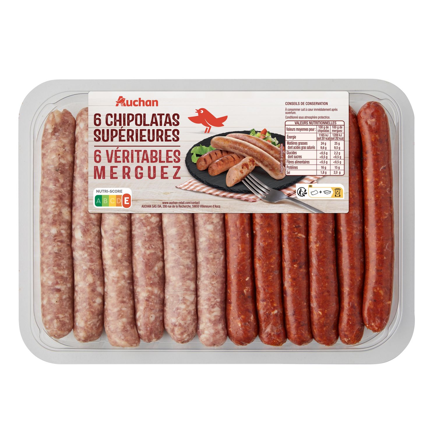 ASSORTIMENT CHIPO HERBES + MERGUEZ X12 AUCHAN