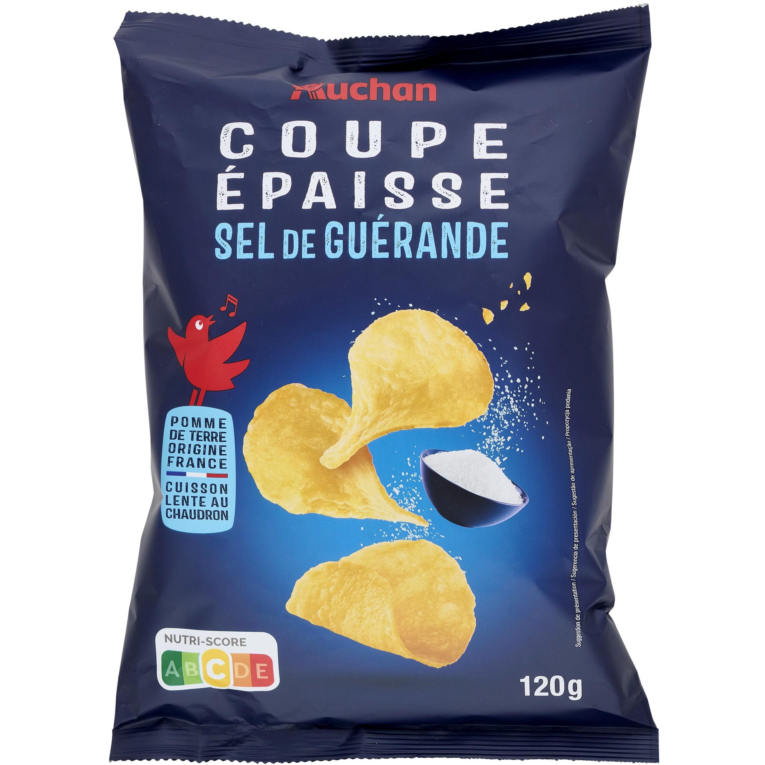 Les chips au chaudron AUCHAN sont cuites plus lentement à une température inférieure à celle des chips classiques, grâce à cette technique et leur coupe épaisse elles sont plus croustillantes et plus gourmandes