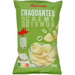 Ingrédients : Pommes de terre (origine France) 60,9%, huile de tournesol 32%, petit LAIT en poudre, arômes (dont oignon, crème en poudre (LAIT) et persil), sel.Traces éventuelles de céréales contenant du gluten, céleri et moutarde.