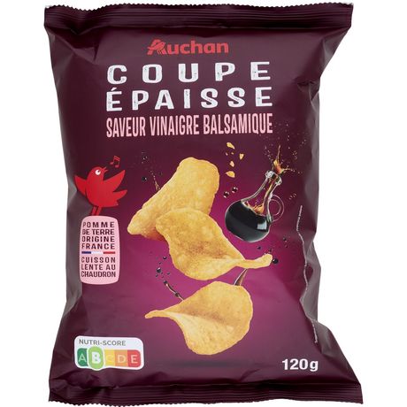 Les chips au chaudron AUCHAN sont cuites plus lentement à une température inférieure à celle des chips classiques, grâce à cette technique et leur coupe épaisse elles sont plus croustillantes et plus gourmandes