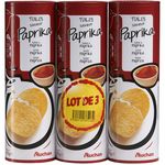 Ingrédients : pommade terre déshydratée 52%, huile de tournesol, amidons (BLÉ etpomme de terre), sirop de glucose, sucre, sel, émulsifiant : mono- et diglycérides d’acides gras, huile de colza, sel réduit en sodium, poudre de paprika, poudre de paprika doux fumé, arôme naturel, poudre d’ail,poudre d’oignon, correcteur d’acidité : acide citrique. Traces éventuelles de lait.