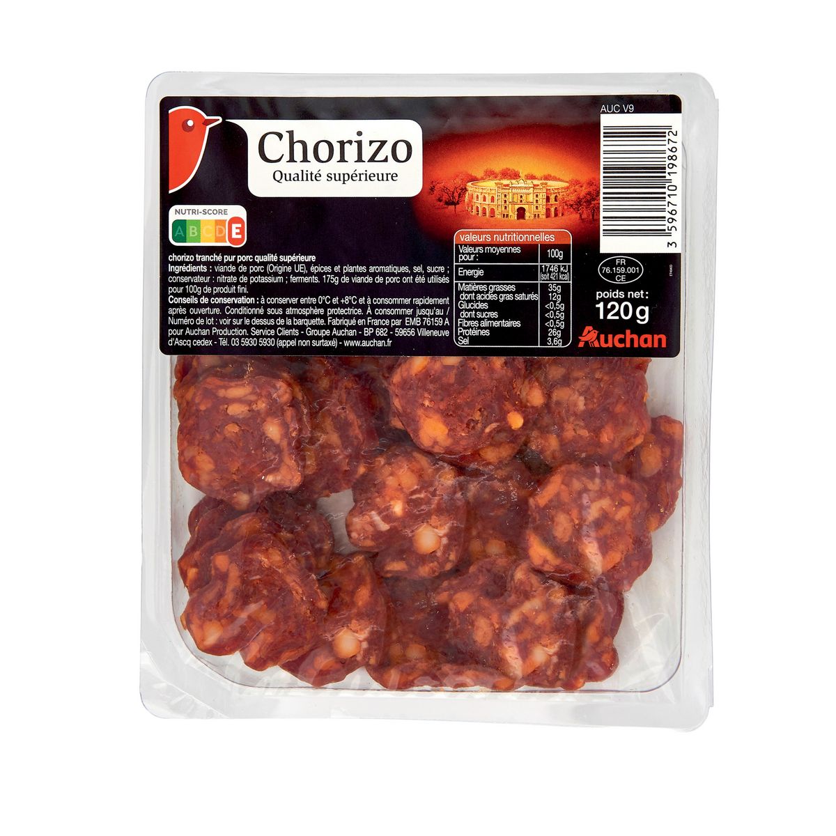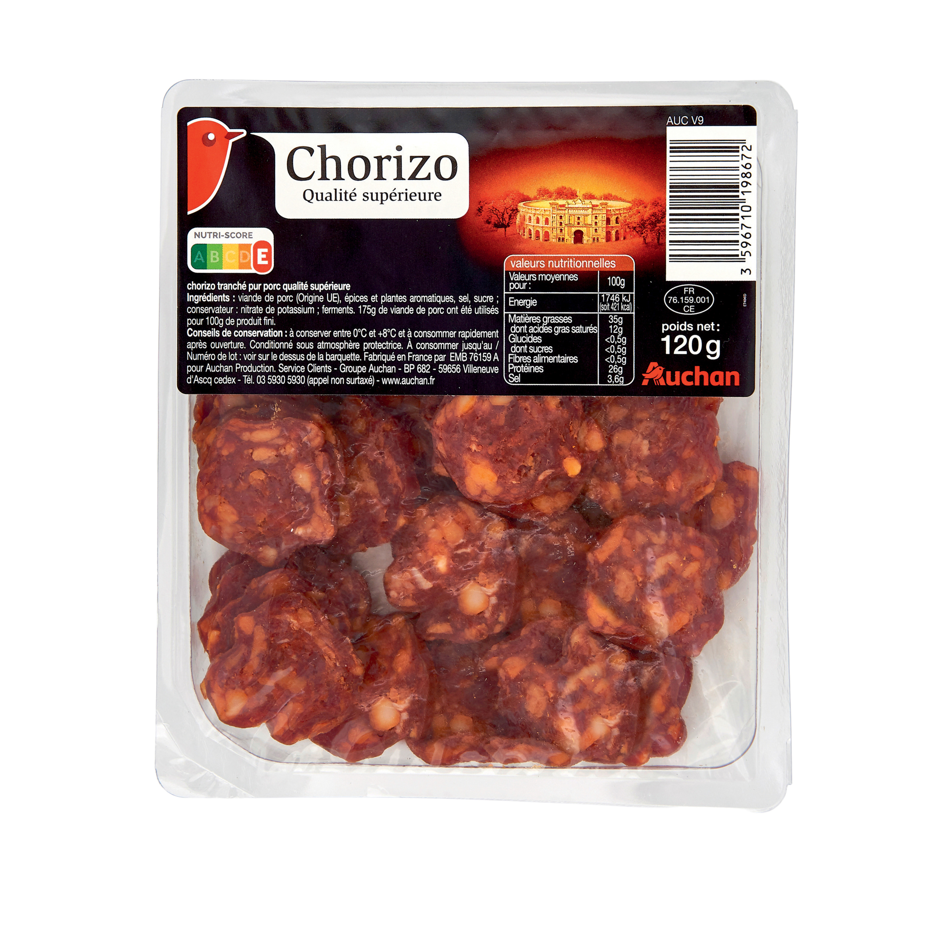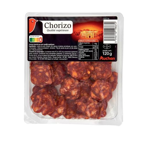 Ingrédients : Viande de porc (Origine UE), épices et plantes aromatiques, sel, sucre conservateur : nitrate de potassium ferments. 175g de viande de porc ont été utilisés pour 100g de produit fini