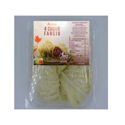 Ces choux farcis sont peu gouteux, le mode cuisson préconisé fait que la farce cuit dans l'eau. Je les ai recuit en cocotte avec des oignons, des lardons et du bouillon de volaille et un peu de von blanc. Ça les améliore bien, mais ce n'est plus ce que j'ai acheté