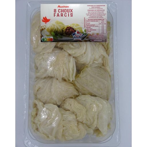 Ces choux farcis sont peu gouteux, le mode cuisson préconisé fait que la farce cuit dans l'eau. Je les ai recuit en cocotte avec des oignons, des lardons et du bouillon de volaille et un peu de von blanc. Ça les améliore bien, mais ce n'est plus ce que j'ai acheté