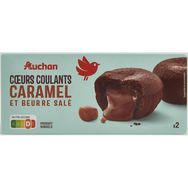 Pâtisseries individuelles composées d’un gâteau au chocolat noir 75,4% et d’un fourrage au caramel et au beurre demi-sel 24,6%, surgelées.