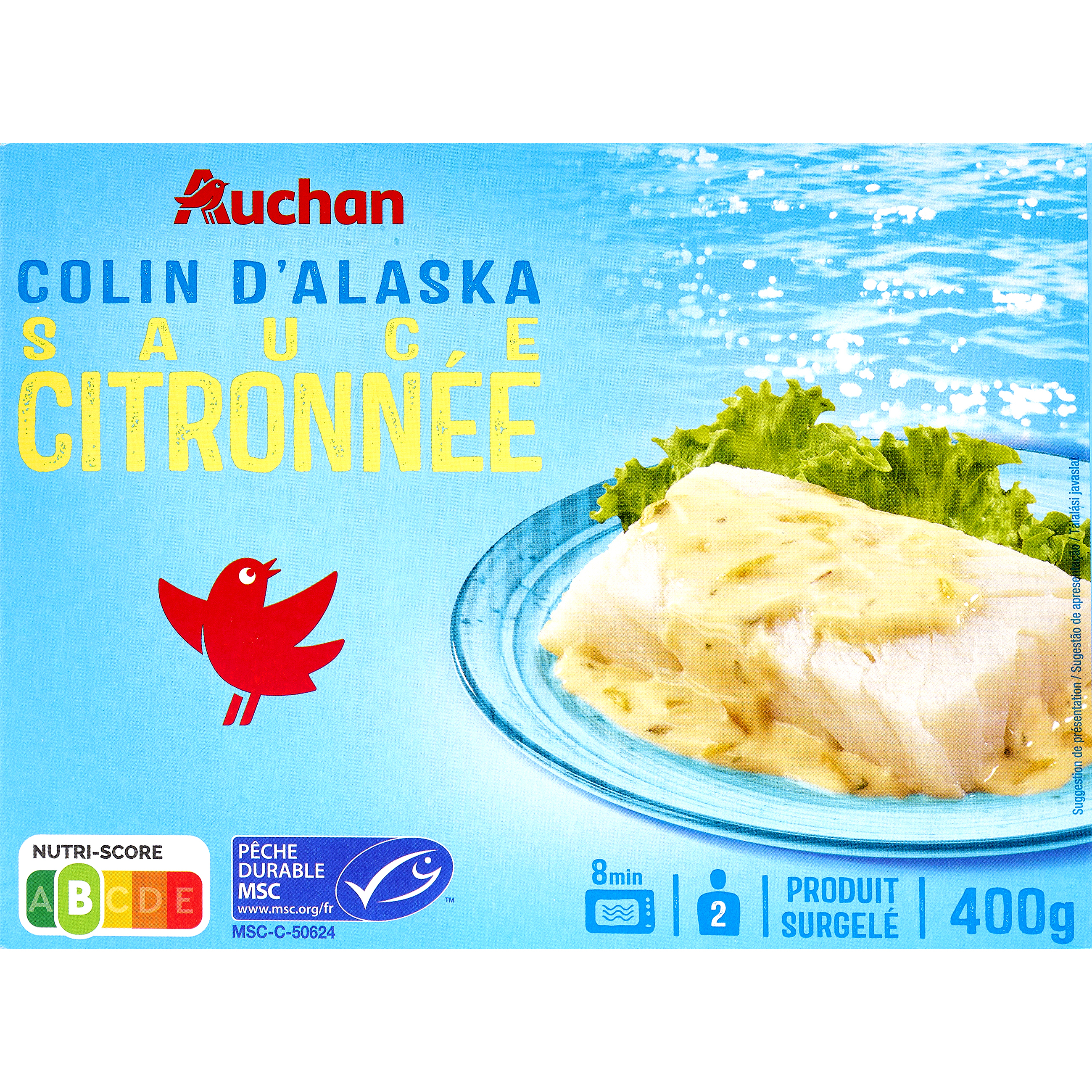 Ingrédients : Portions de bloc de filets de colin d'Alaska* MSC** (POISSON) ( Theragra chalcogramma ) 50%, eau, LAIT écrémé en poudre, jus de citron 2,5%, beurre (LAIT), crème fraîche (LAIT), oignon, huiles végétales (contient tournesol et/ou colza), farine de BLÉ, échalote, amidon de maïs natif, fumet de POISSON (chair et jus de POISSON, sel), sel, zeste de citron 0,2%, zeste d'orange, épaississant: gomme xanthane, épices 5 baies, aneth, curcuma, plantes aromatiques (persil, laurier, thym). Traces éventuelles de céleri, sésame et moutarde. Élaboré à partir de lait d'origine UE. * Malgré tout le soin apporté à la préparation de nos produits, la présence d'arêtes n'est jamais exclue. ** Ce produit provient d'une pêcherie qui a répondu au référentiel environnemental du MSC pour une pêche durable et bien gérée. www.msc.org/fr.