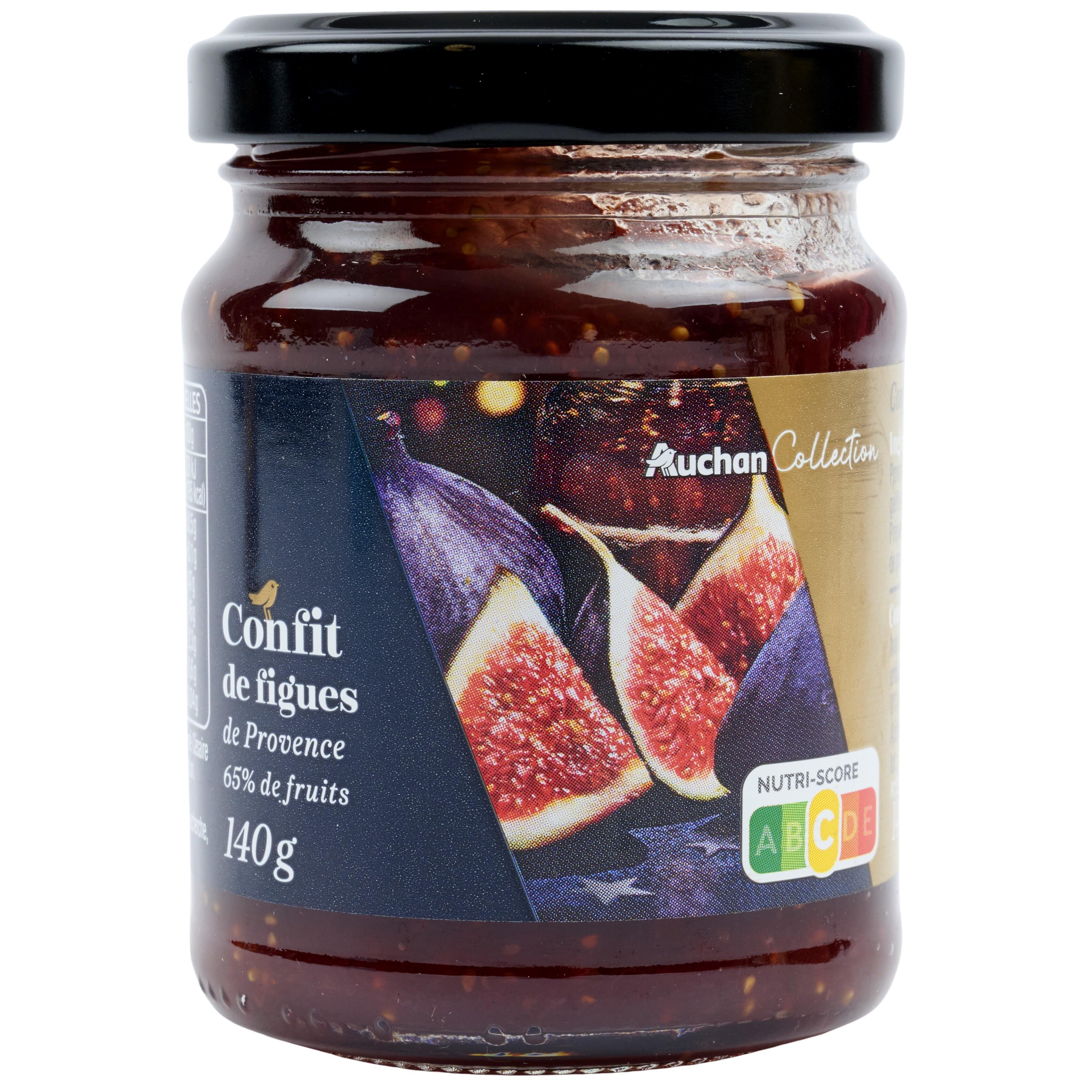 Ingrédients : figues (origine France, Provence), sucre, jus de citron concentré, gélifiant : pectines, sel, poivre blanc. Préparé avec 65g de figues pour 100g de produit fini.