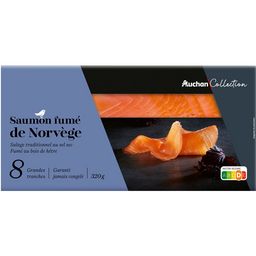 Saumon Atlantique (Salmo salar), élevé en Norvège, fumé au bois de hêtre.