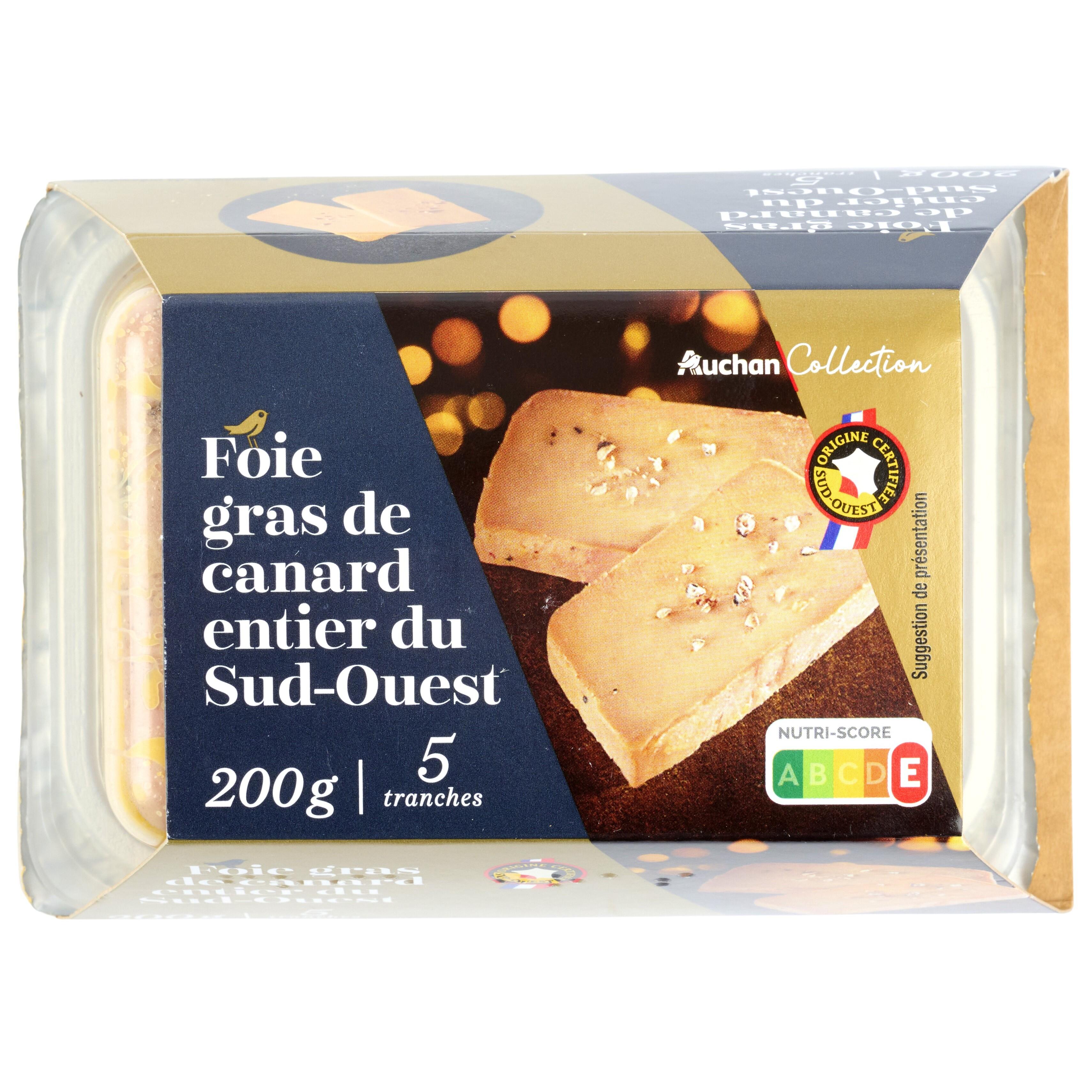 Bonjour, Merci pour votre retour concernant le Foie Gras de Canard Entier du Sud-Ouest Auchan Collection (5 parts, 200g). Nous regrettons que la saveur du produit n'ait pas pleinement répondu à vos attentes. Vos commentaires nous sont précieux et nous aideront à améliorer nos produits. Bien cordialement,