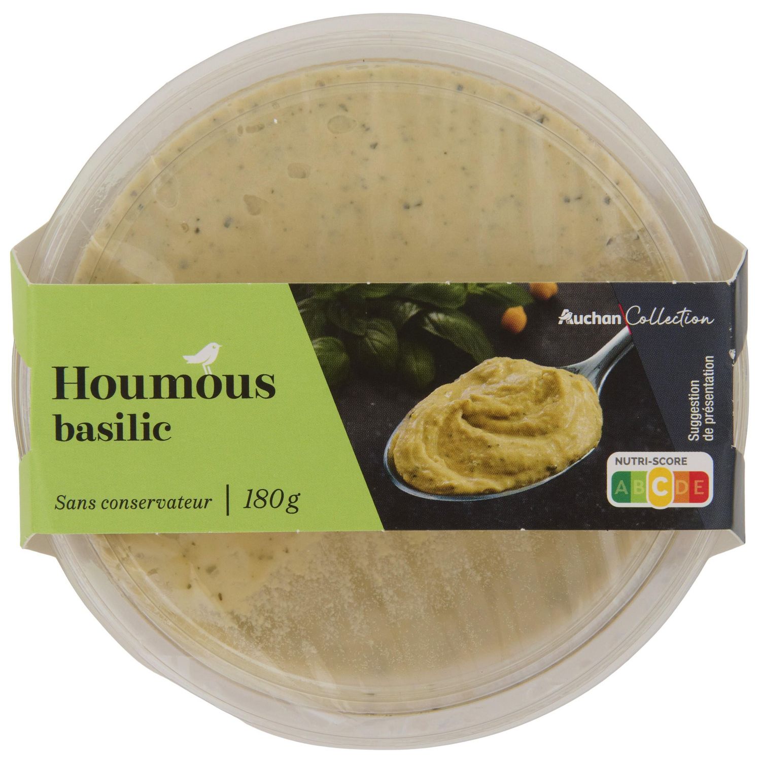 Ingrédients : Pois chiche 49%, huile de colza, pâte de graines de SÉSAME 13%, eau, basilic 3,5%, jus de citron concentré, vinaigre d'alcool, sel, ail. Traces éventuelles de crustacés, lait, mollusques, moutarde, poisson, céleri, oeufs, soja et blé.