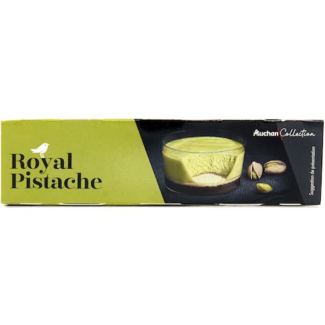 Royal mousse à la pistache sur lit de chocolat noir croustillant