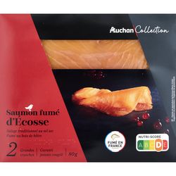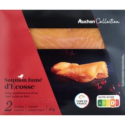saumon Atlantique (Salmo salar), élevé en Ecosse (Royaume-Uni), fumé au bois de hêtre.