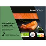 Saumon Atlantique (salmo salar), élevé en Irlande, fumé au bois de hêtre, issu de l'agriculture biologique Fabrication certifiée par Bureau Veritas certification France FR-BIO-10 Distribution certifiée par Ecocert France FR-BIO-01