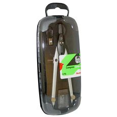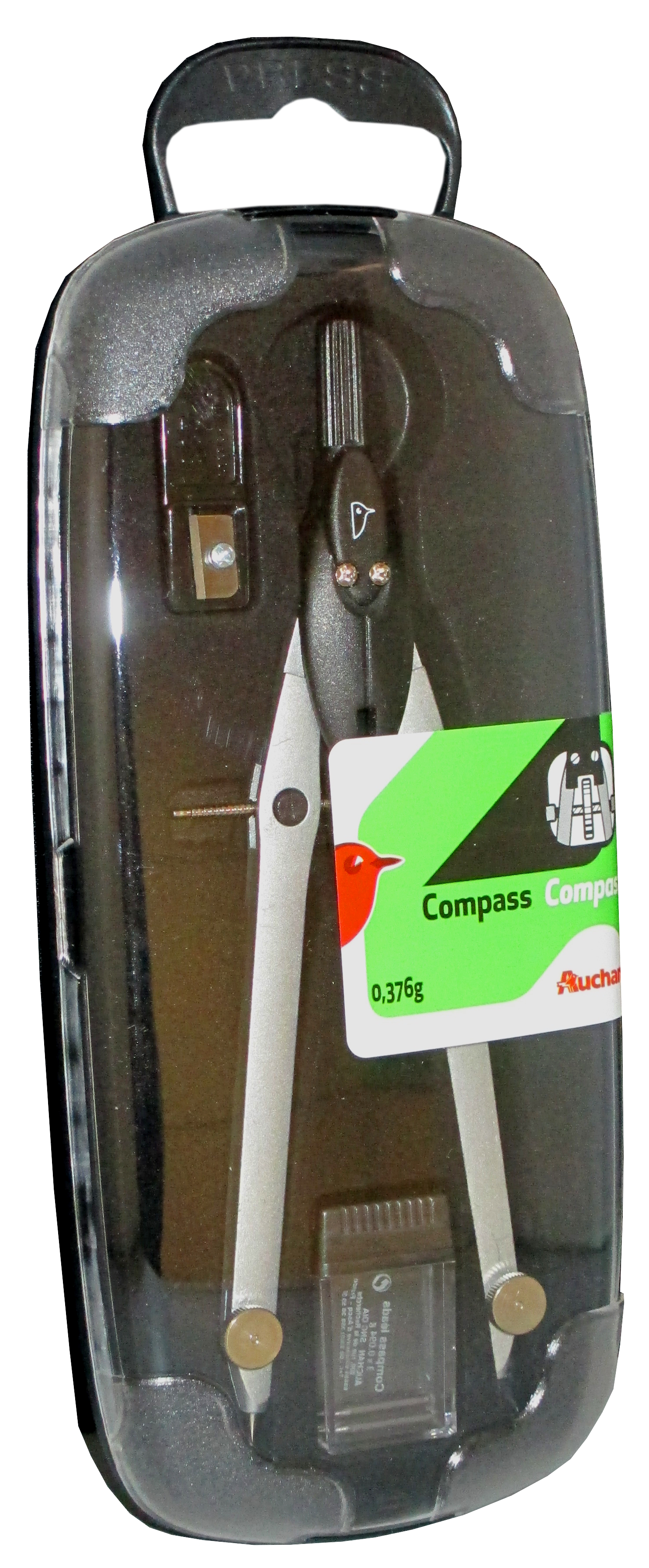En savoir +Compas en métal, set de 3 pièces : Compas, taille mines, étui mines.