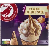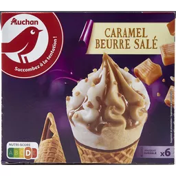 Craquez pour la nouvelle gourmandise de la gamme des cônes Auchan, de la glace au caramel au beurre salé et sa sauce au caramel.