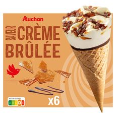 Glace saveur crème brûlée (69,4%), gaufrette (13,6%), sauce au caramel (7,8%), pâte à glacer au cacao maigre (7,1%), morceaux de sucre caramélisés enrobés (2,1%).