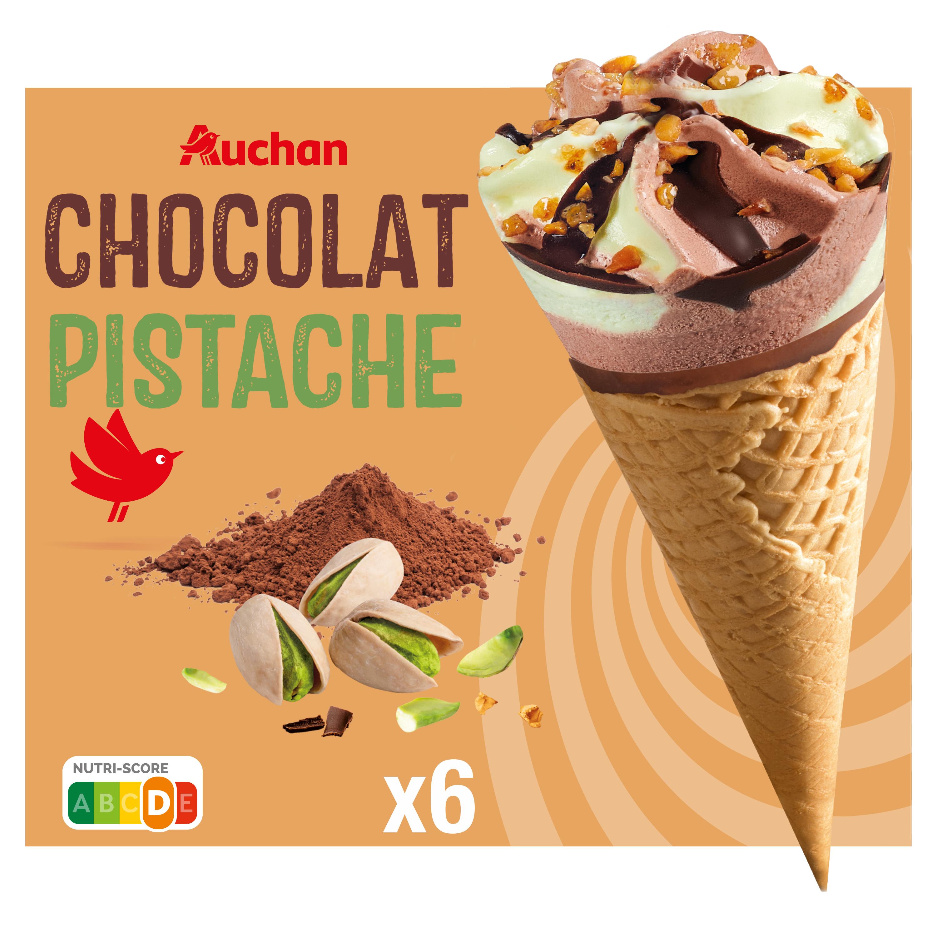 Le cône chocolat-pistache, une alliance parfaite entre le cacao intense et la saveur rafraîchissante de la pistache pour une escapade gourmande