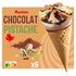 Ingrédients : Eau, sucre, graissevégétale (noix de coco), farine de BLÉ, lactose (LAIT) et protéines de LAIT, chocolat en poudre 4,3% (sucre, cacao), sirop de glucose, cacao maigre en poudre 1,2%, pâte de cacao émulsifiants : lécithines (SOJA),mono- et diglycérides d'acides gras d'origine végétale, AMANDES et NOISETTES0,7% (en proportions variables), huile végétale (colza) pâte de PISTACHE0,3% arôme naturel stabilisants : gomme guar, farine de graines de caroube concentrés de carthame et de spiruline beurre de cacao. Traces éventuelles d'autres fruits à coque.