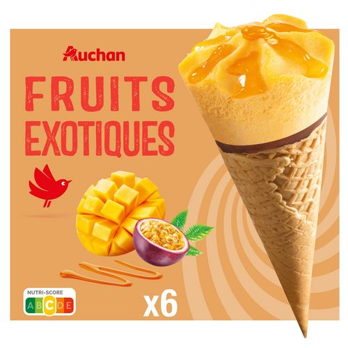 Sorbet fruit de la passion (37,8%), sorbet mangue (37,6%), gaufrette (13,4%), pâte à glacer au cacao maigre (7%), sauce aux fruits de la passion, aromatisée (4,2%).