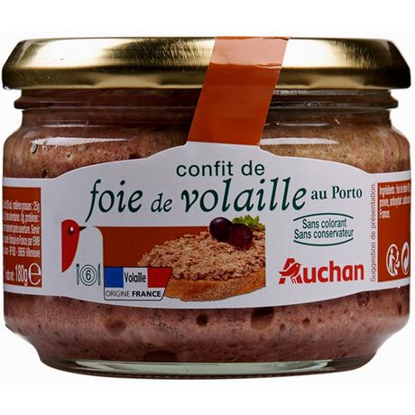 Ingrédients : Foie de dinde 45%, gorge de porc, gras de porc, oignons, Porto 2%, eau, sel, poivre, antioxydant : acide ascorbique, arôme. Elaboré à partir de volaille et de porc origine France.