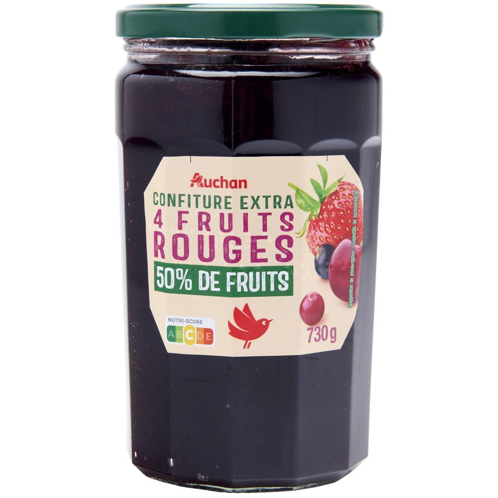 Idéale pour vos tartines du matin, nos crêpes, vos yaourts, ou encore pour la réalisation de vos pâtisseries, notre Confiture Extra Fruits rouges Auchan, 50% de fruits, s'adapte à toutes vos envies gourmandes.