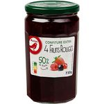 Fruits: Fraises (18.5%); groseilles rouges (12%); framboises (12%); cassis (7.5%), sucre, sucre de canne roux, gélifiant: pectines, correcteur d'acidité: acide citriquePréparé avec 50g de fruits pour 100g de produit finiTeneur totale en sucres: 55g pour 100g de produit fini