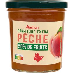 Confiture auchan à la pêche avec des morceaux de fruits très bonne.