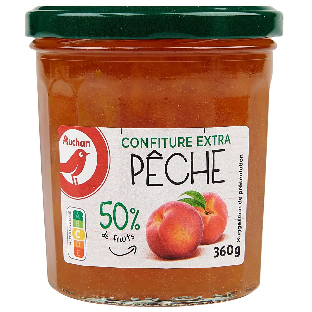 Confiture à la pêche extra. Je la prends toujours dans la marque Auchan car je la trouve très bonne, pas trop sucrée