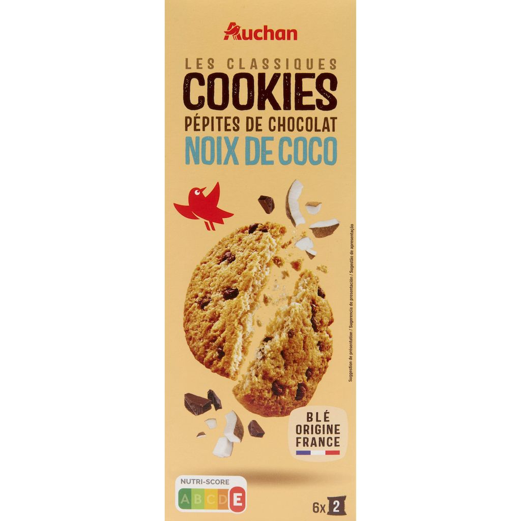 12 cookies aux pépites de chocolat et à la noix de coco, aromatisés (noix de coco)