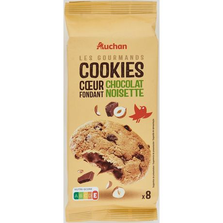 Cookies aux pépites de chocolat (14,7%) et fourrés à la noisette (28%)