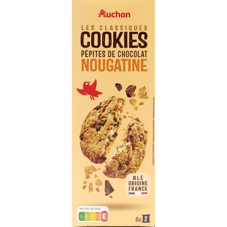 12 COOKIES AUX PEPITES DE CHOCOLAT ET A LA NOUGATINE, AROMATISES