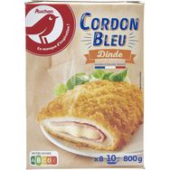 Les cordons bleus de dinde AUCHAN, à base de viande de dinde traitée en salaison, sont garnis de jambon de dinde et de savoureux fromage fondu et enrobé d'une croustillante chapelure . Cuits au four ou à la poèle, c'est l'incontournable des repas rapides et savoureux.